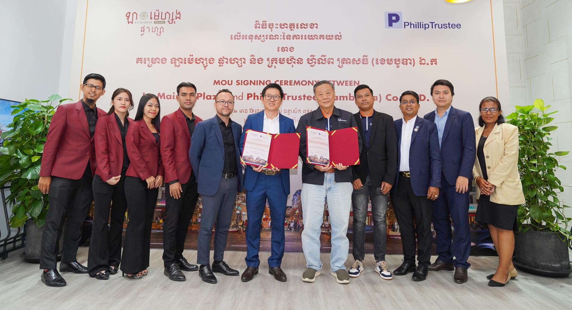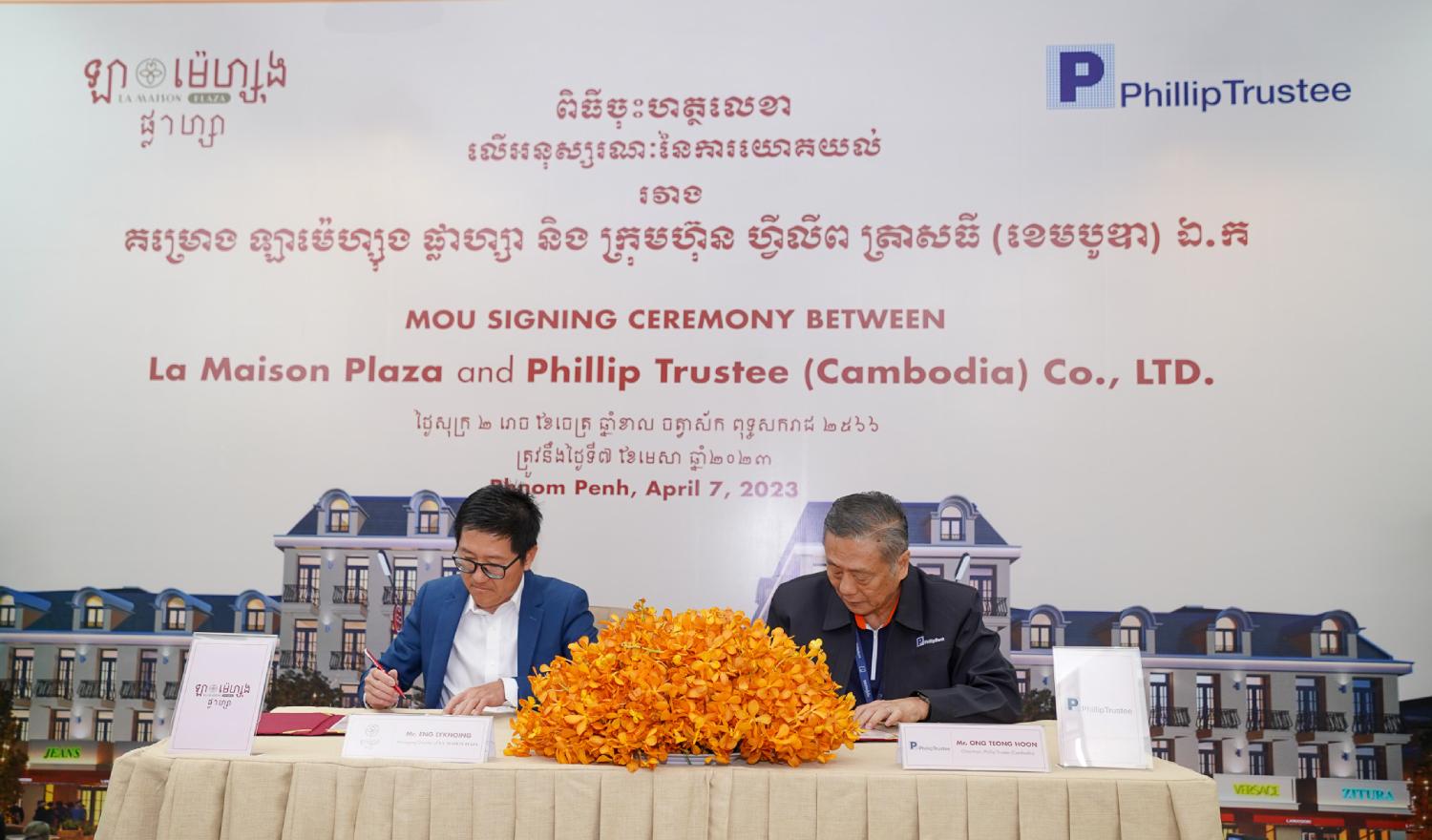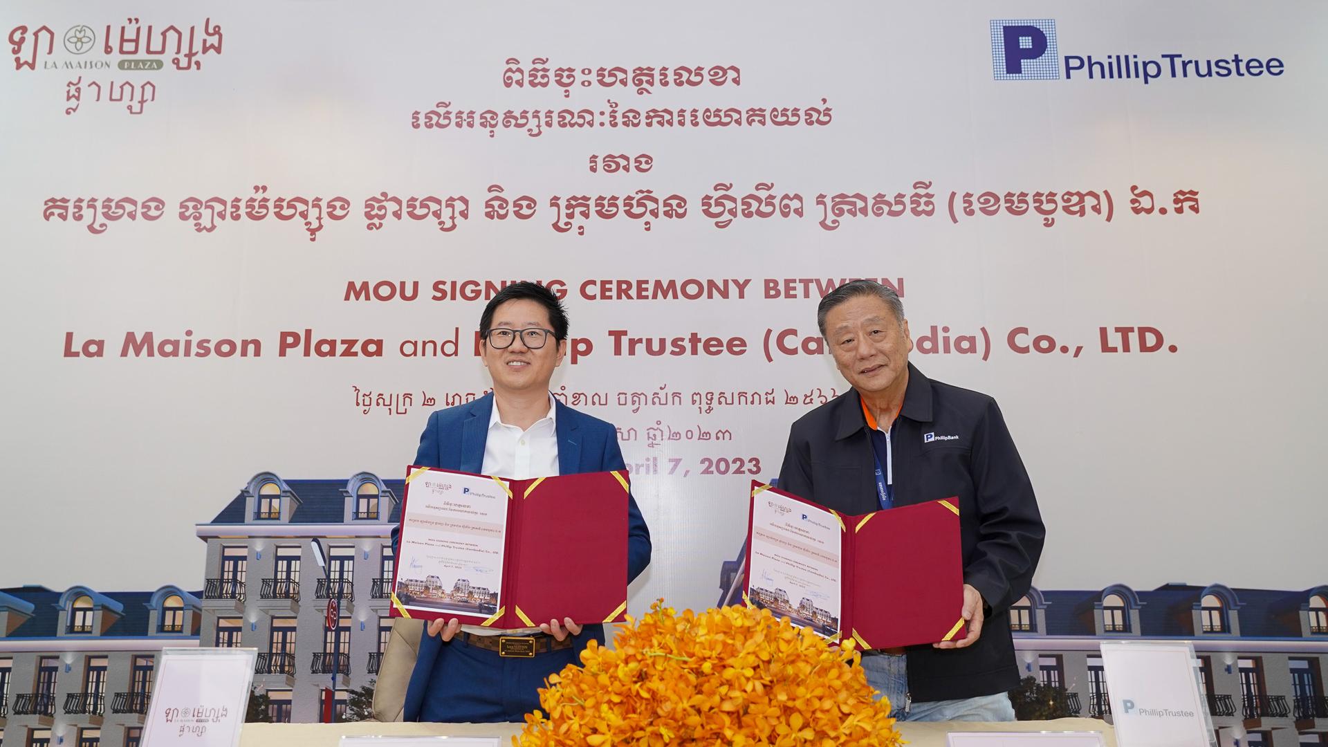 Phnom Penh, 07th April 2023 - La Maison Plaza and Phillip Trustee (Cambodia) Co., Ltd. sign a Memorandum of Understanding (MoU) to expand the overall scope of the market for products, services, and cooperation between La Maison Plaza and Phillip Trustee (Cambodia) Co., Ltd. In particular, attracting international investors to build real estate credibility in the Cambodian market.